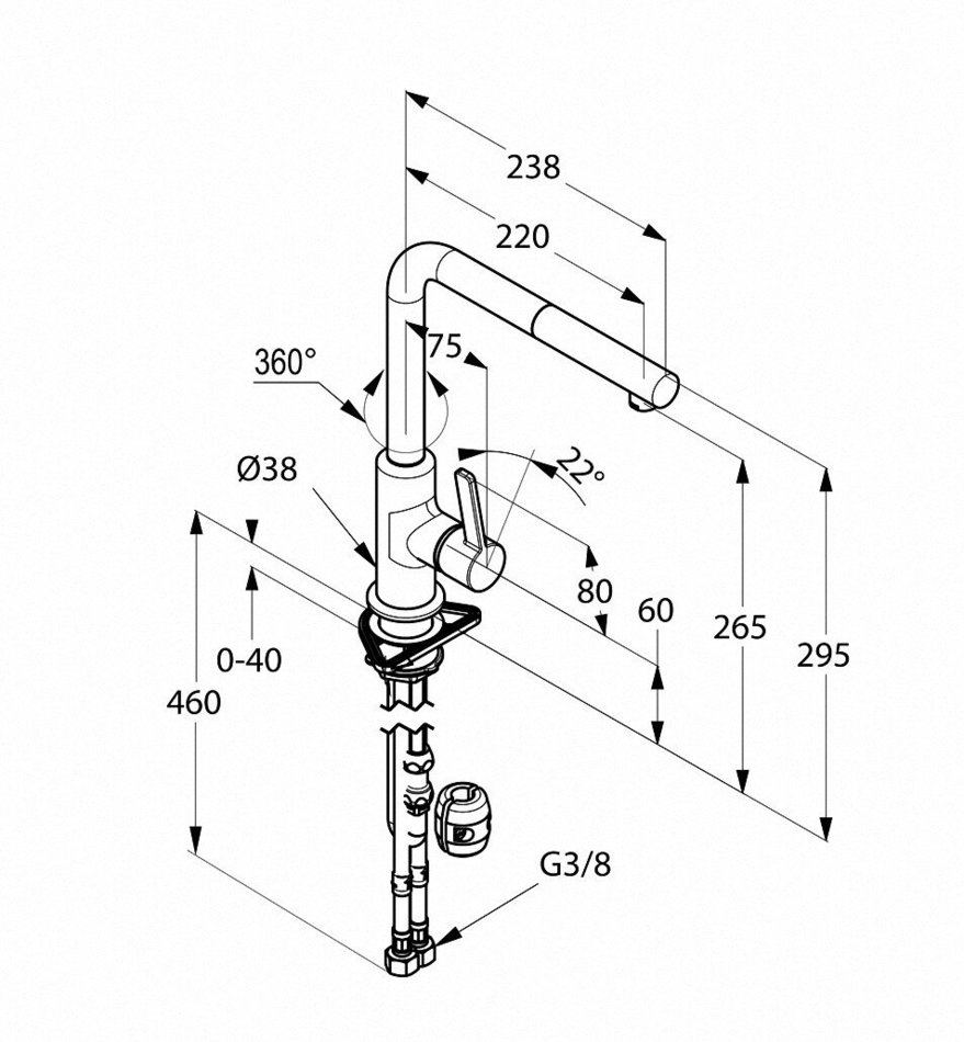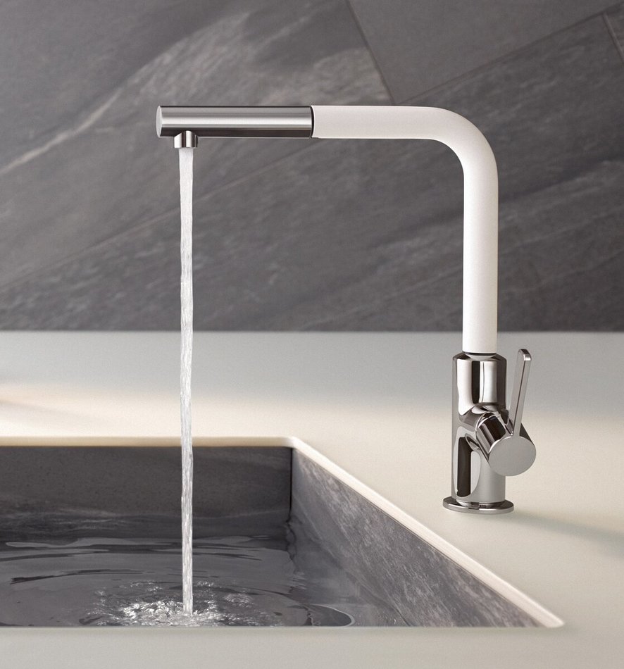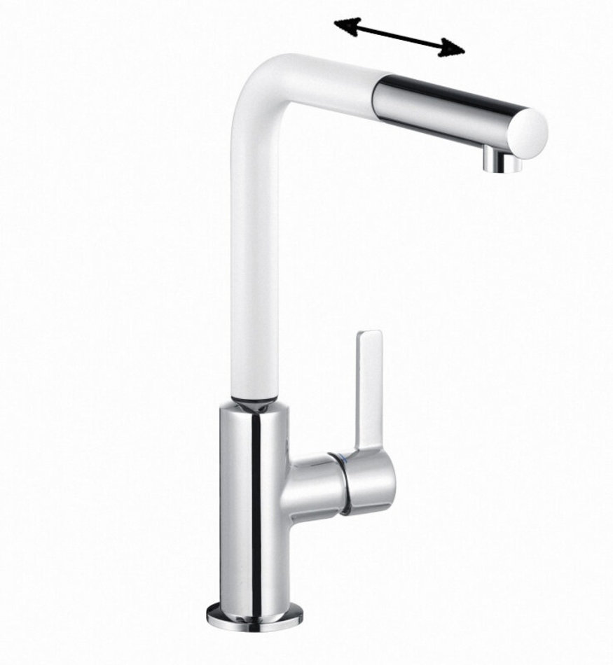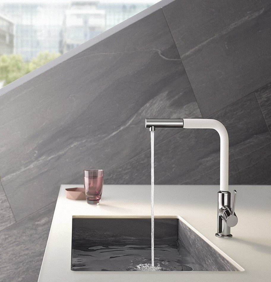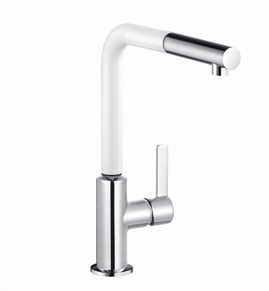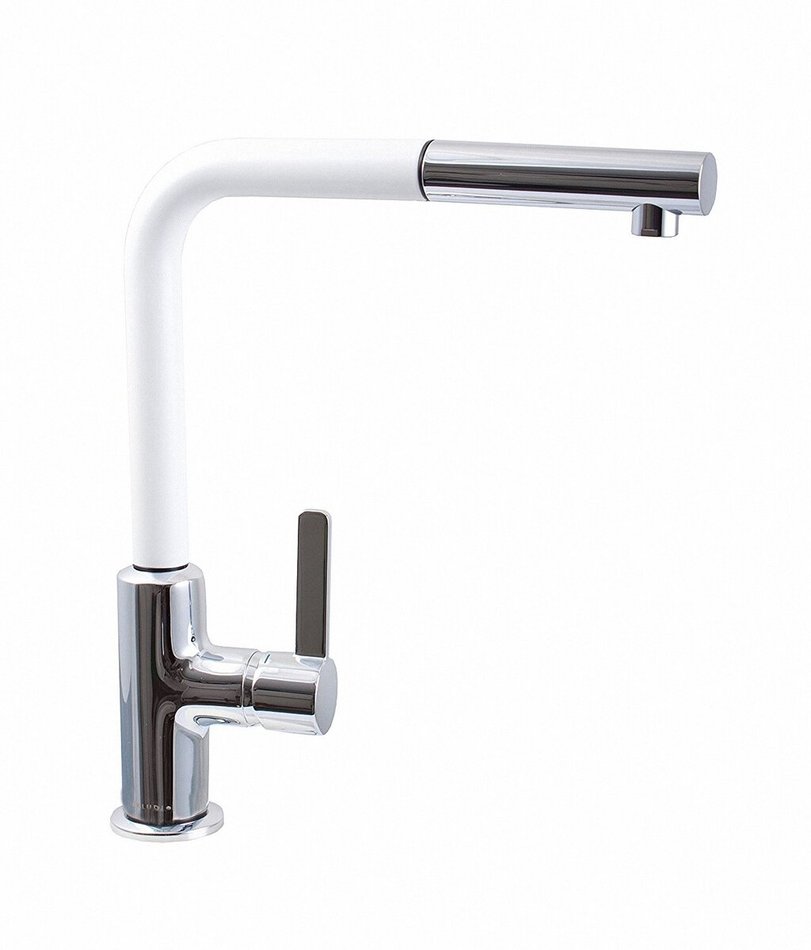 Смеситель Kludi L-Ine 408519375 для кухонной мойки, с выдвижным изливом, цвет хром-белый матовый