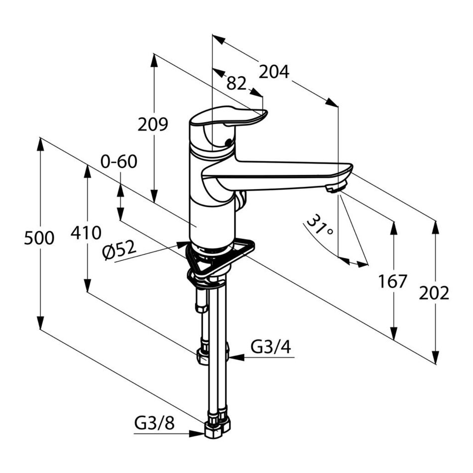 Смеситель Kludi Objekta 325770575 для кухонной мойки, с дополнительным краном для подключения стиральной или посудомоечной машины, для безнапорных водонагревателей
