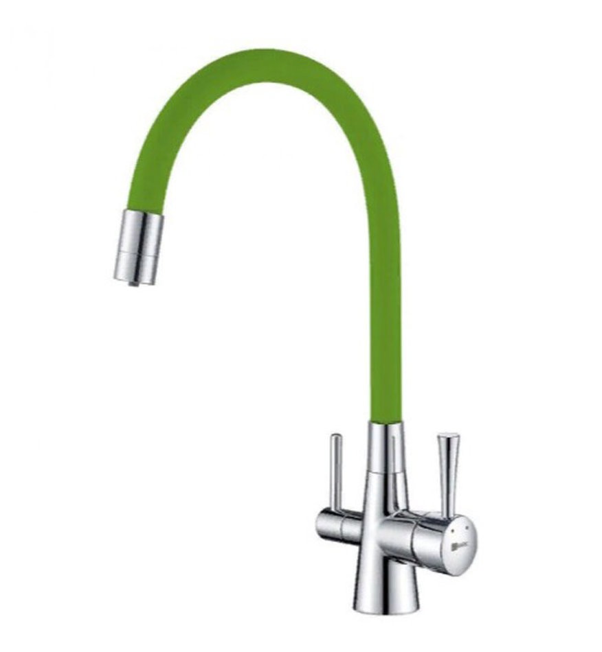 Смеситель Lemark Comfort LM3075C-Green для кухонной мойки, с подключением к фильтру питьевой воды, хром/зеленый
