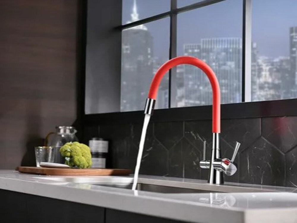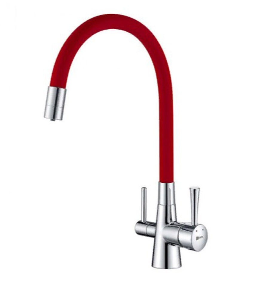 Смеситель Lemark Comfort LM3075C-Red для кухонной мойки, с подключением к фильтру питьевой воды, хром/красный