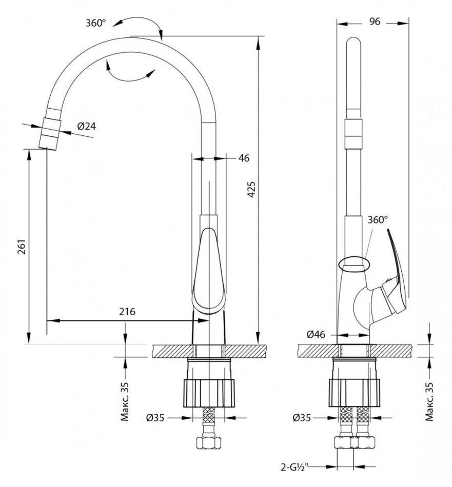 Смеситель Lemark Linara LM0415C-Black для кухонной мойки, с гибким изливом, хром
