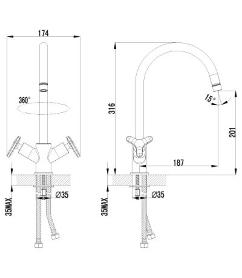 - Поворотный излив