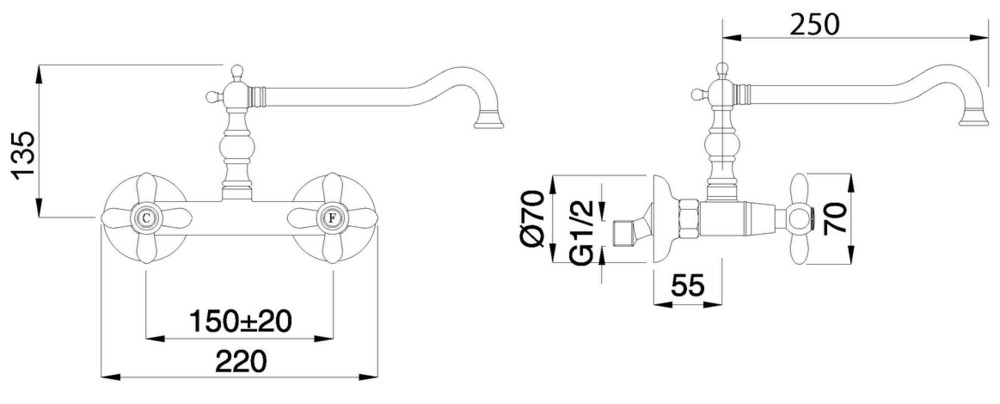 - Цвет: хром, бронза, золото, медь, состареный хром (возможные варианты)