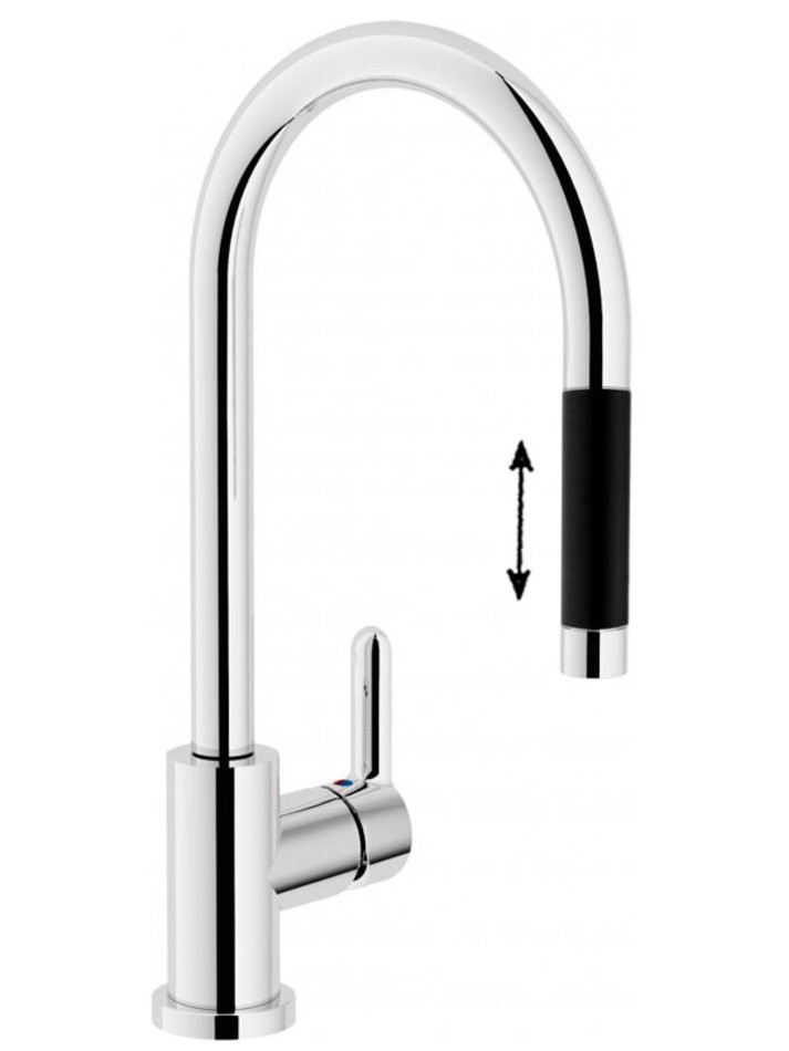 Смеситель Nobili ABC для кухни, с вытяжным изливом, цвет хром, черный, AB87137/1CR