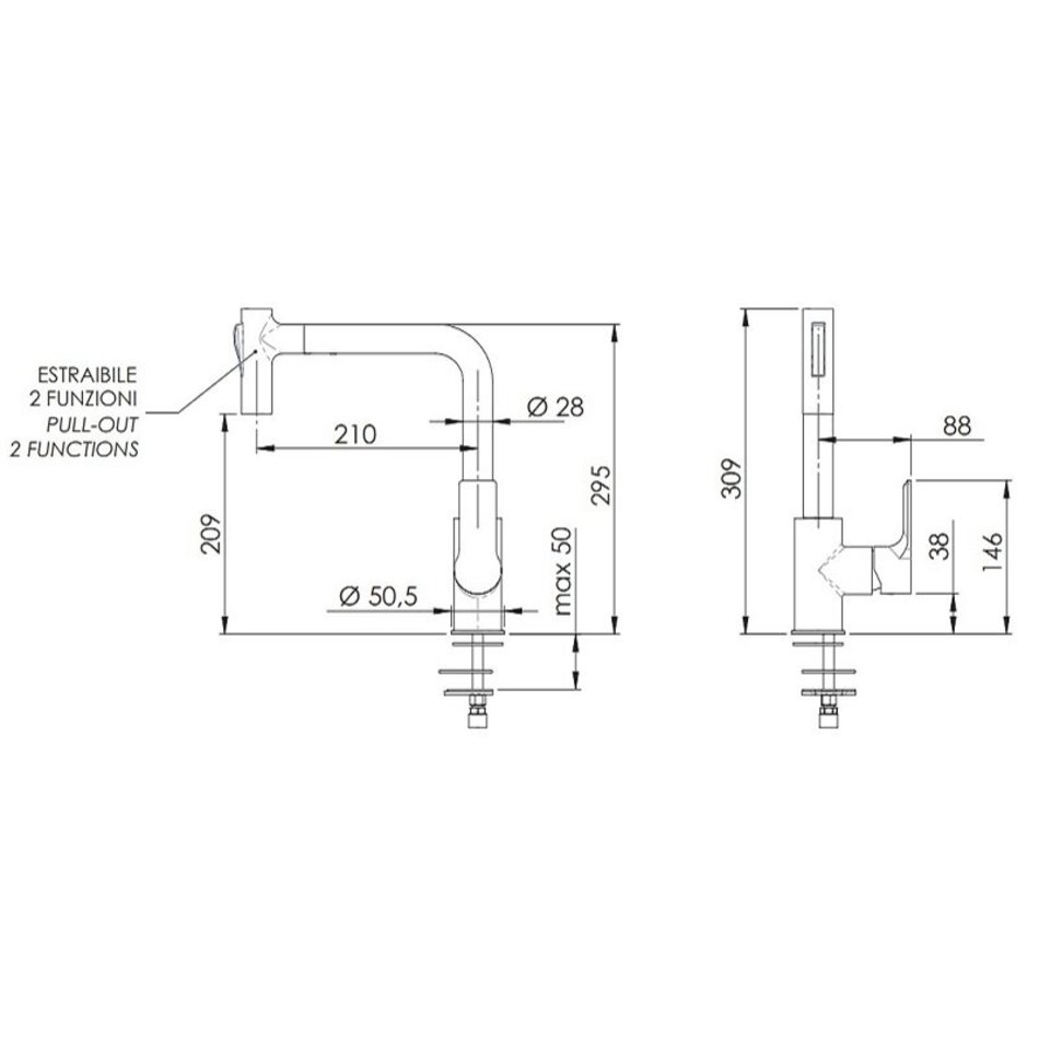 Смеситель Remer Energy для кухонной мойки, с вытяжным изливом, цвет хром, EY81M