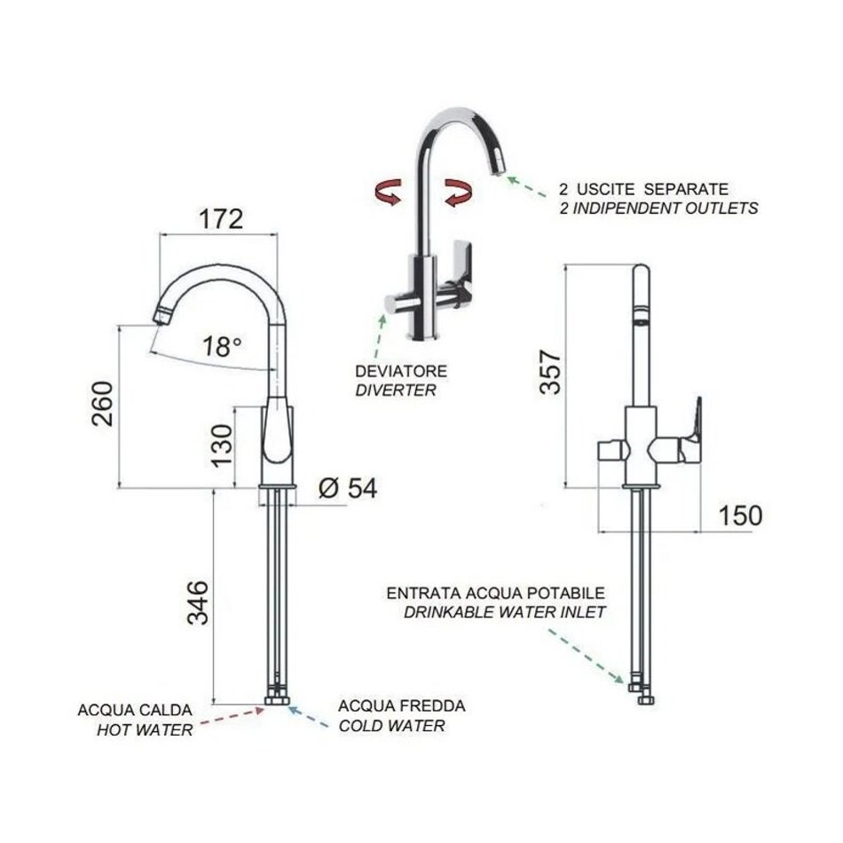 Однорычажный смеситель для раковины с тремя входными отверстиями, изливом и двумя полностью независимыми выходными отверстиями в аэраторе, одно из которых подаёт питьевую воду прямо из излива смесителя.