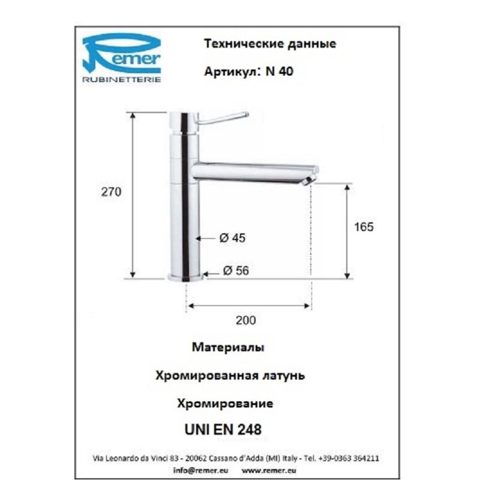 Смеситель Remer Minimal для кухни, цвет хром, N40