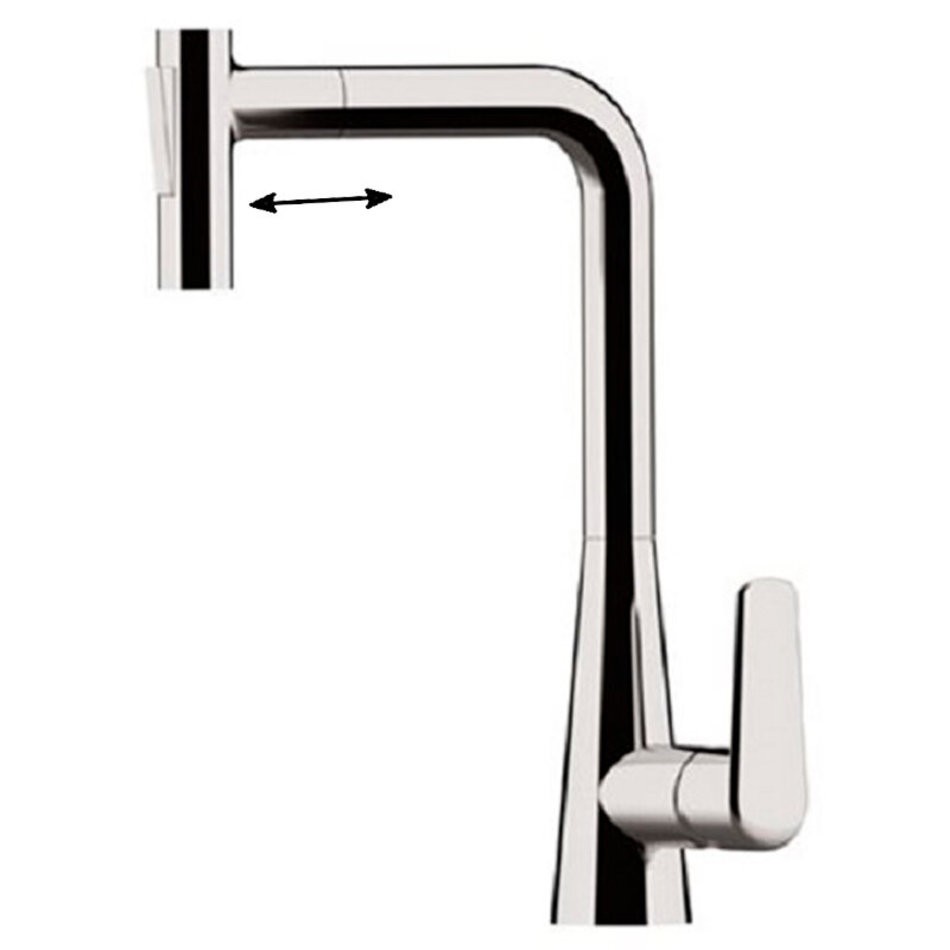 Высокий смеситель с вытяжным изливом (хром), для мойки, однорычажный, с высоким поворотным изливом и выдвижным ручным душем с двухфункциональной ручкой-молотком.