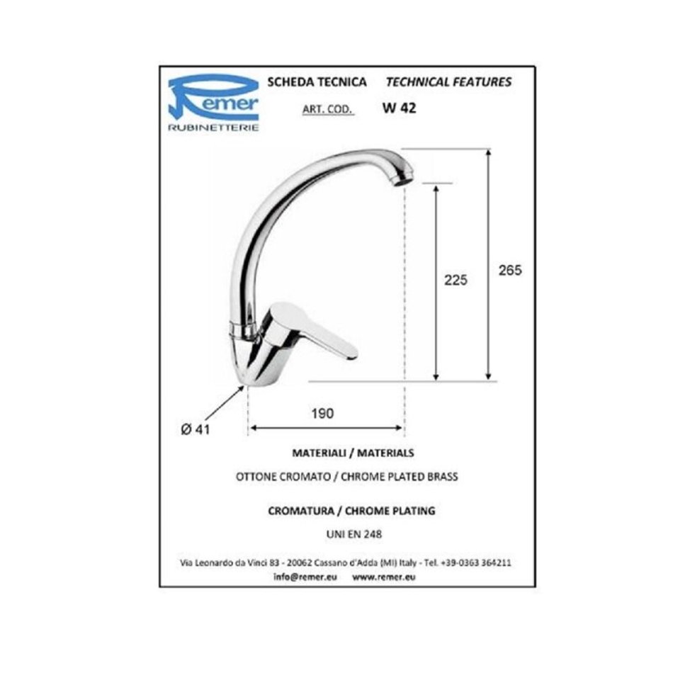 Смеситель Remer Winner для кухни, цвет хром, W42