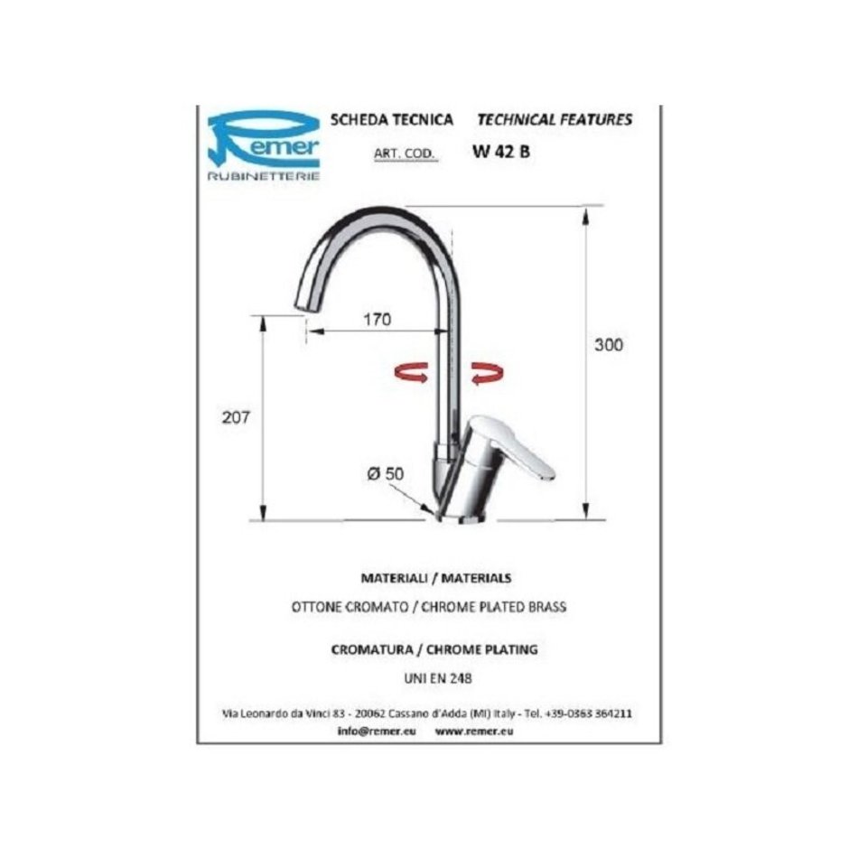 Смеситель Remer Winner для кухни, цвет хром, W42B