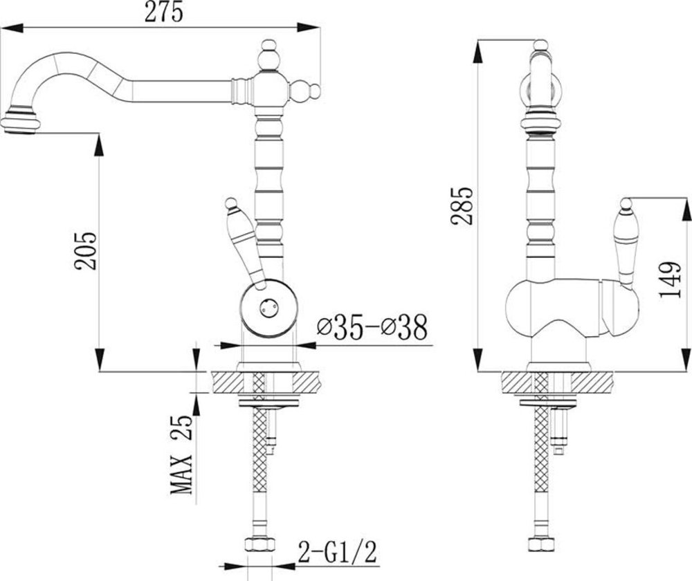 - Высота смесителя: 285 мм