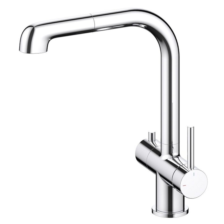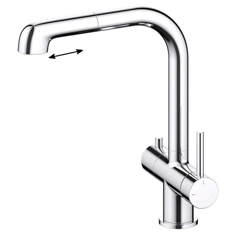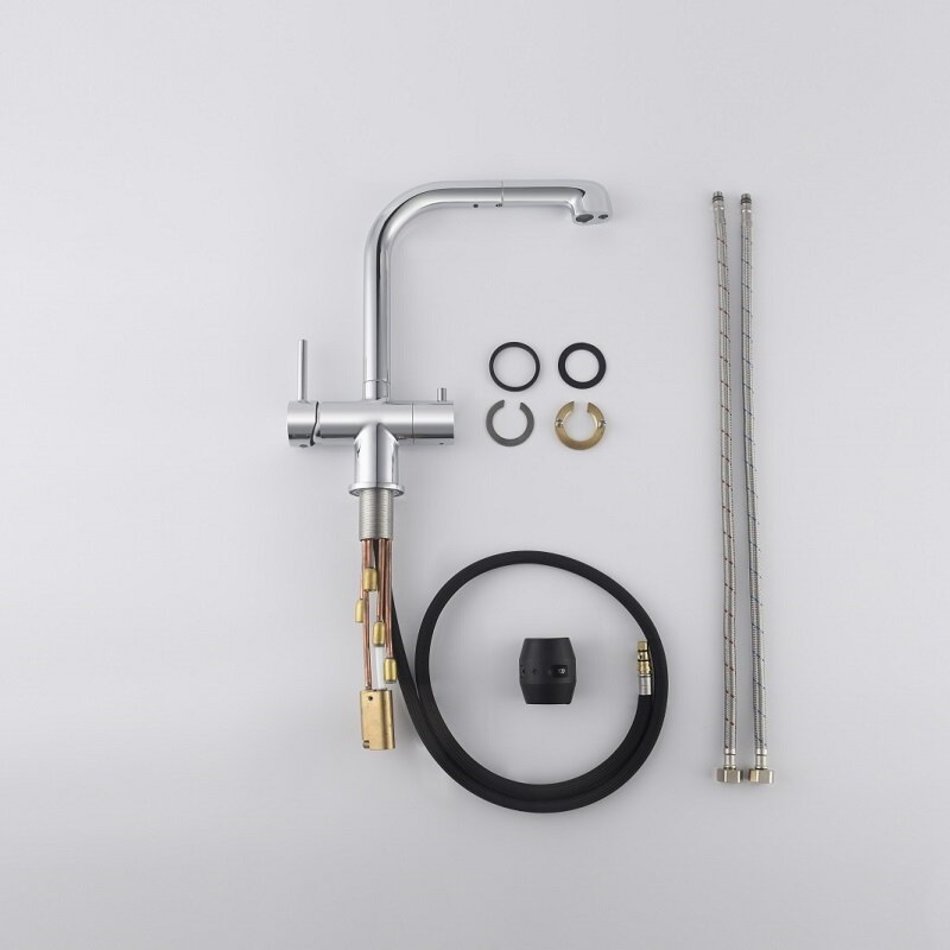 - Смеситель для кухни с выдвижным изливом и возможностью подключения фильтра для питьевой воды