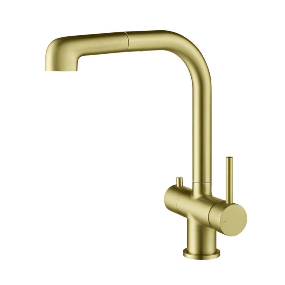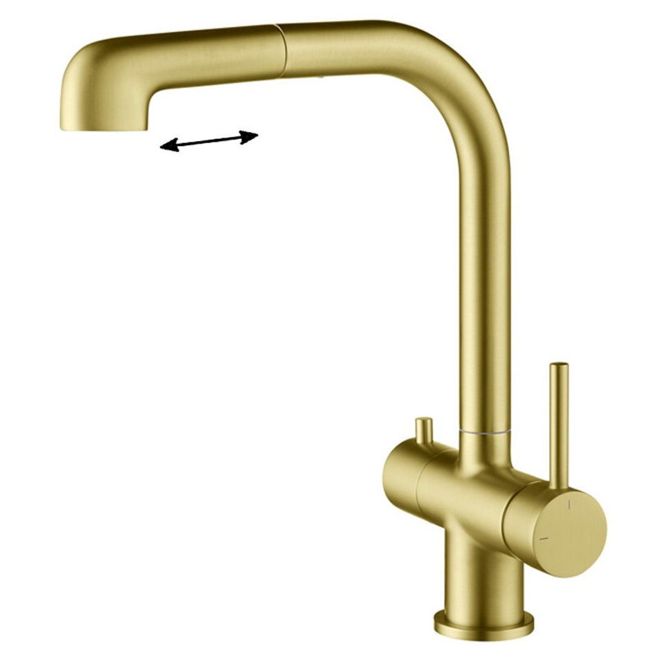 Смеситель Timo Saona 2346/17FL для кухонной мойки с выдвижным изливом, под фильтр, золото матовое