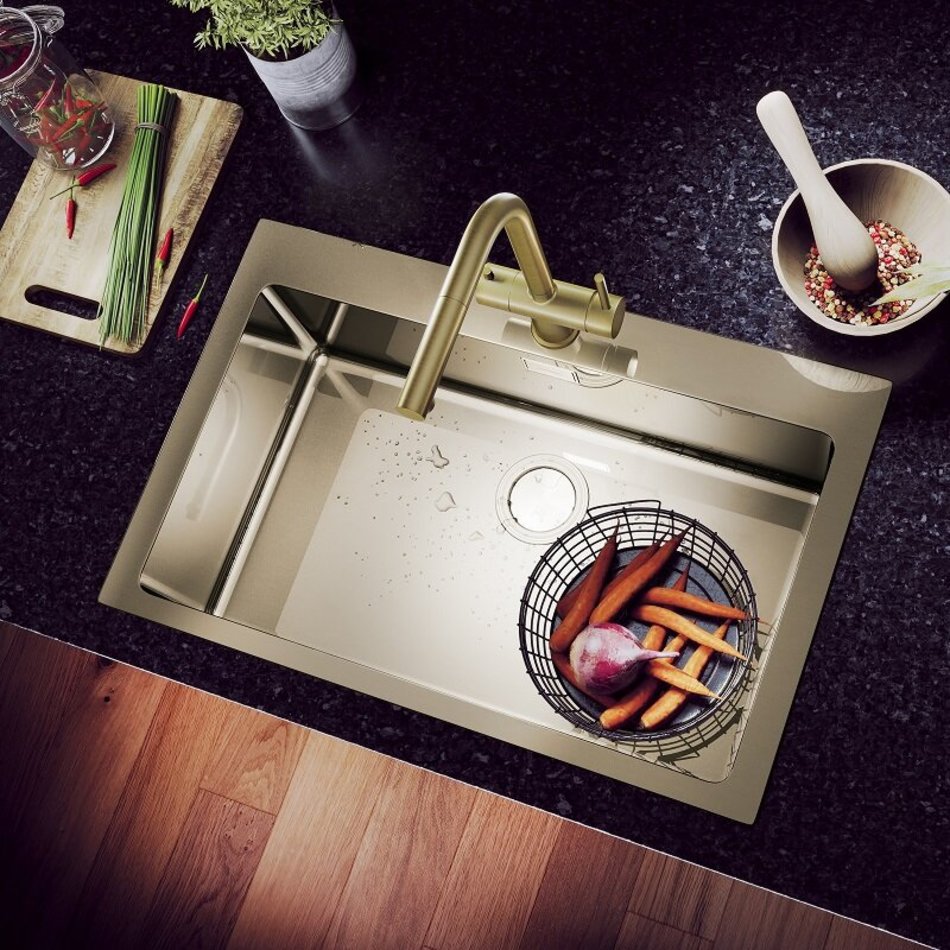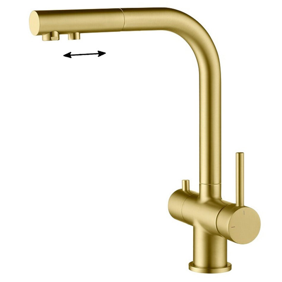 Смеситель Timo Saona для кухонной мойки с выдвижным изливом, под фильтр, цвет золото матовое, 2356/17FL