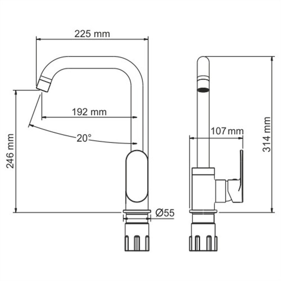 - Высота смесителя: 314 мм