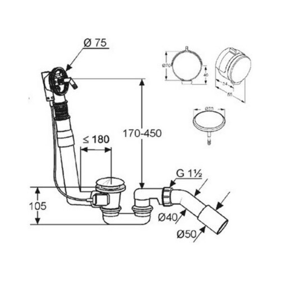 - Гидрозатвор, накладная панель, фановая отводная труба 4/5 см