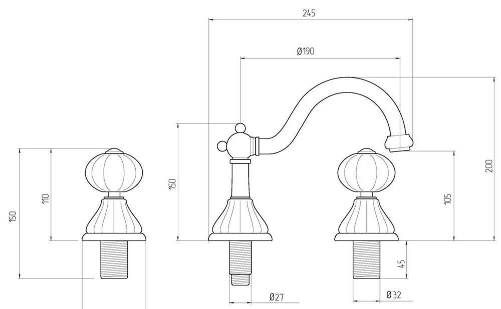 Cмеситель Migliore Olivia 19007 для раковины, хром, ручки белая керамика