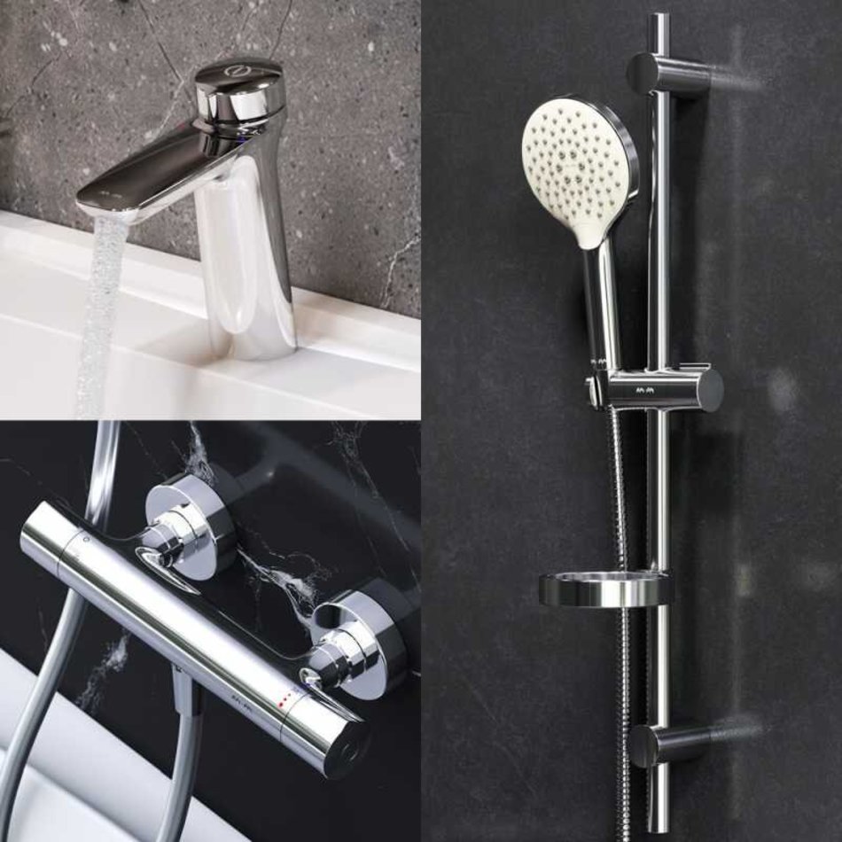 Набор смесителей Inspire V2.0 - это готовое решение для ванной комнаты. 3 в 1: набор из двух смесителей и душевого комплекта гармонично дополняют друг друга как функционально, так и эстетически.
