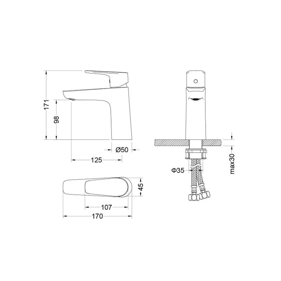 - Гибкая подводка 1/2" в комплекте, длина 60 см