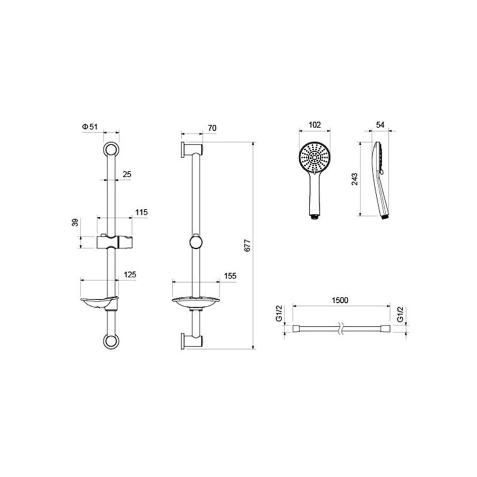 - Размер/диаметр ручной лейки: 24,3х5,4хØ10,2 см