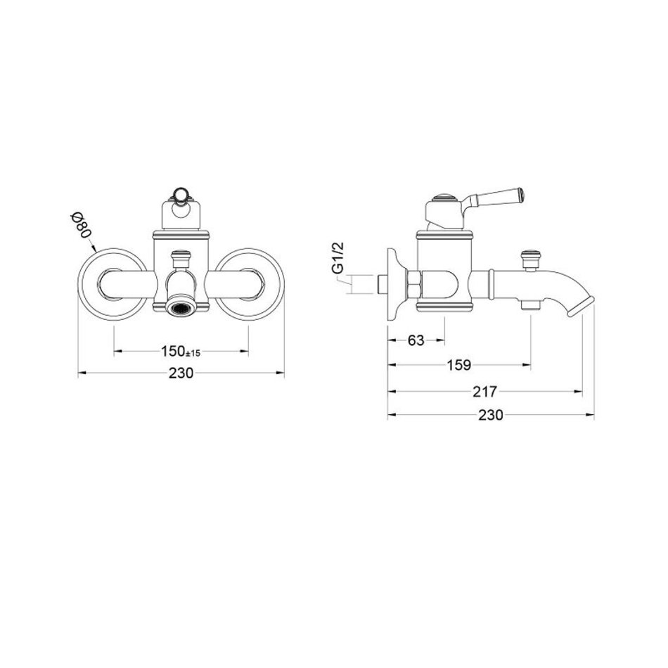 - Межцентровое расстояние 150 мм