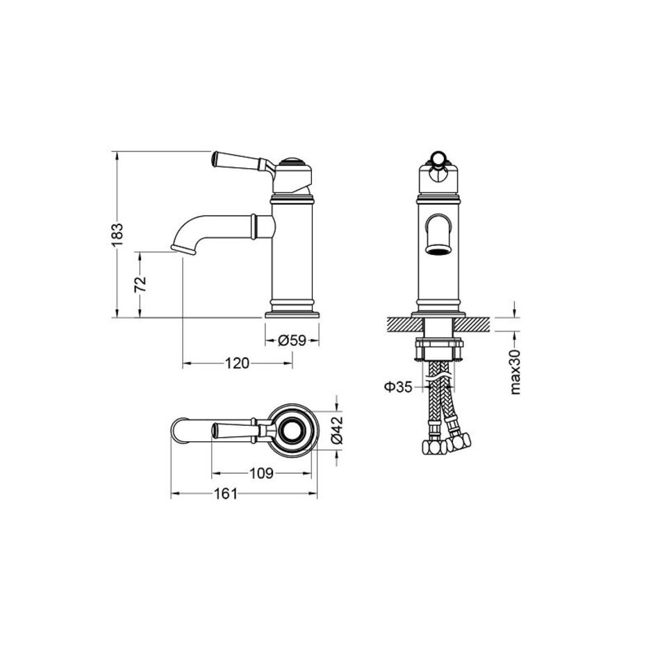 - Аэратор: Neoperl, ШвейцарияИзлив: фиксированный 12 смГибкая подводка 1/2" в комплекте, длина 60 см