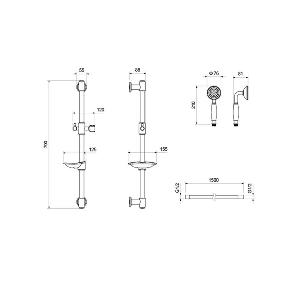Душевой гарнитур Классик 1jet 65 см AQ2020MB