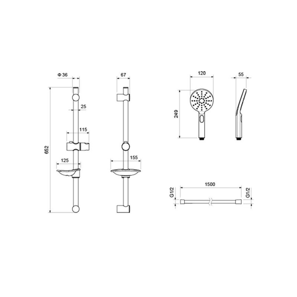 - Размер/диаметр ручной лейки:24,9х5,4хØ12 см