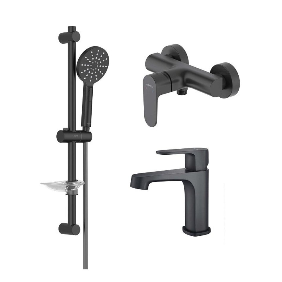 Комплект смесителей Aquatek Оберон AQ1231MB, цвет черный матовый