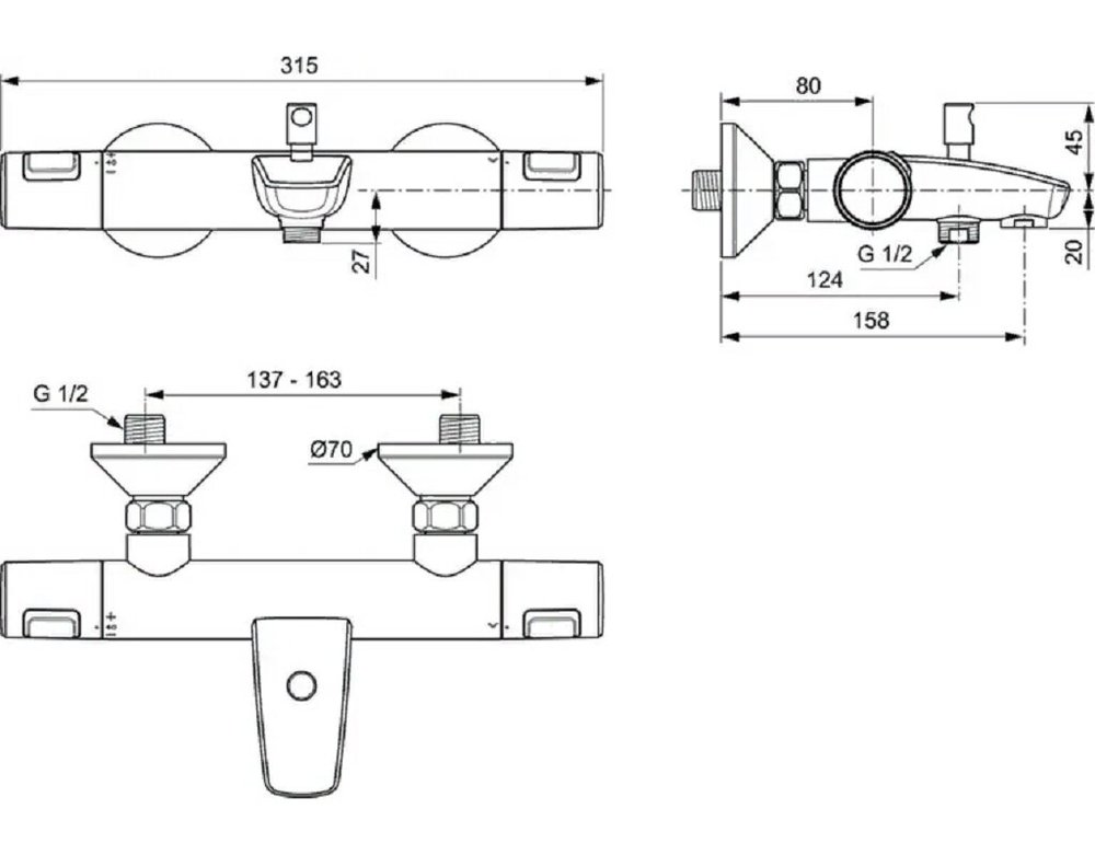 Комплект смесителей Ideal Standard Ceratherm T25 BC984AA, с термостатическим смесителем, хром