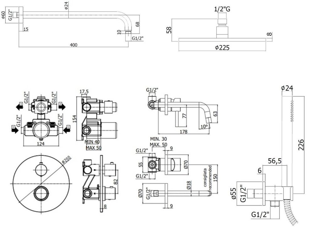 - Душевой гарнитур Paffoni Master ZDUP094BO со шланговым подключением и держателем лейки, белый матовый