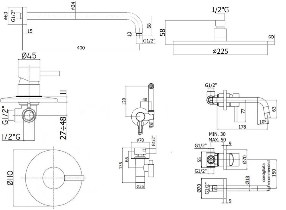 - Смеситель Paffoni Light LIG011CR для душа, встраиваемый, хром