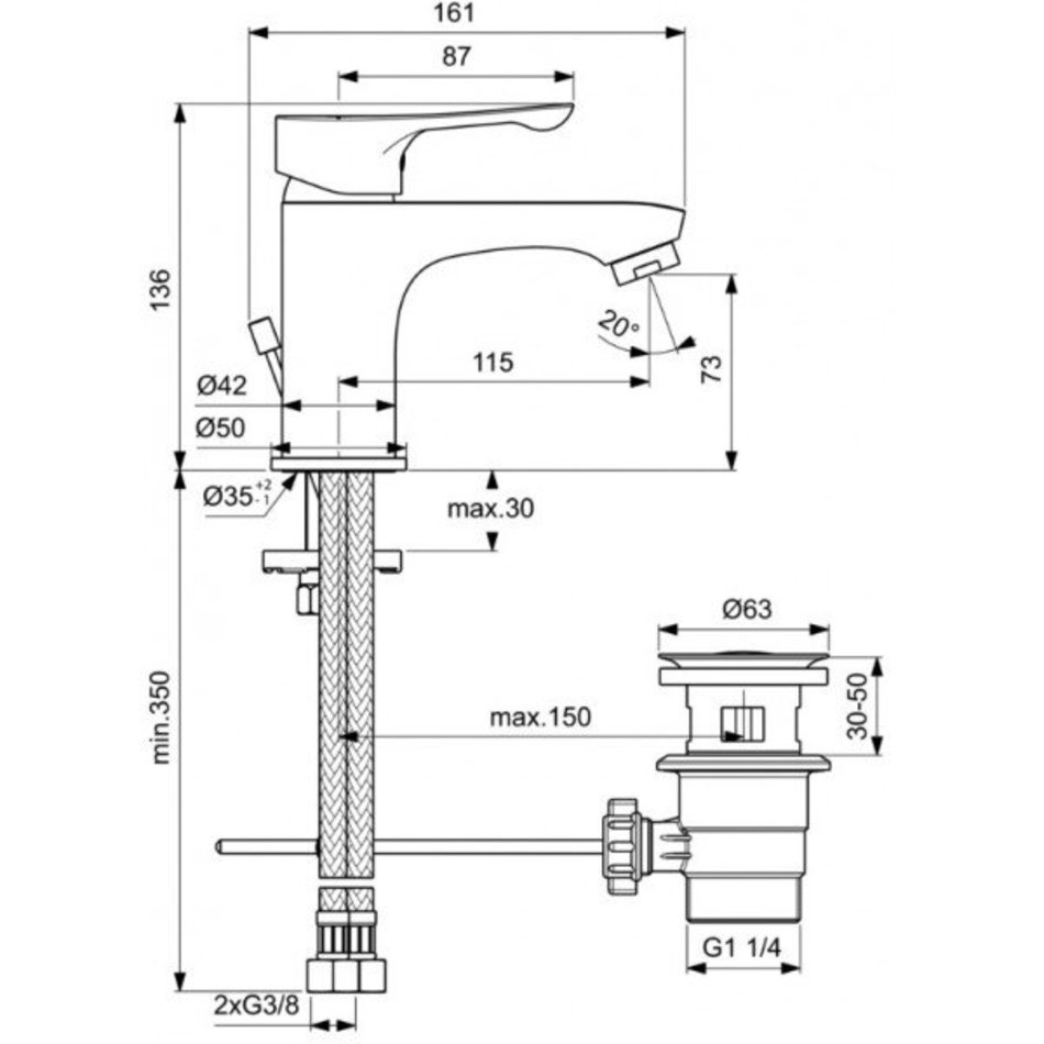 - Смеситель для умывальника с металлическим донным клапаном BC486AA ALPHA: система монтажа EASY-FIX (облегченный монтаж), гибкая подводка G3/8" (шланги PEX), металлический донный клапан, металлическая рукоятка с индикаторами горячей/холодной воды