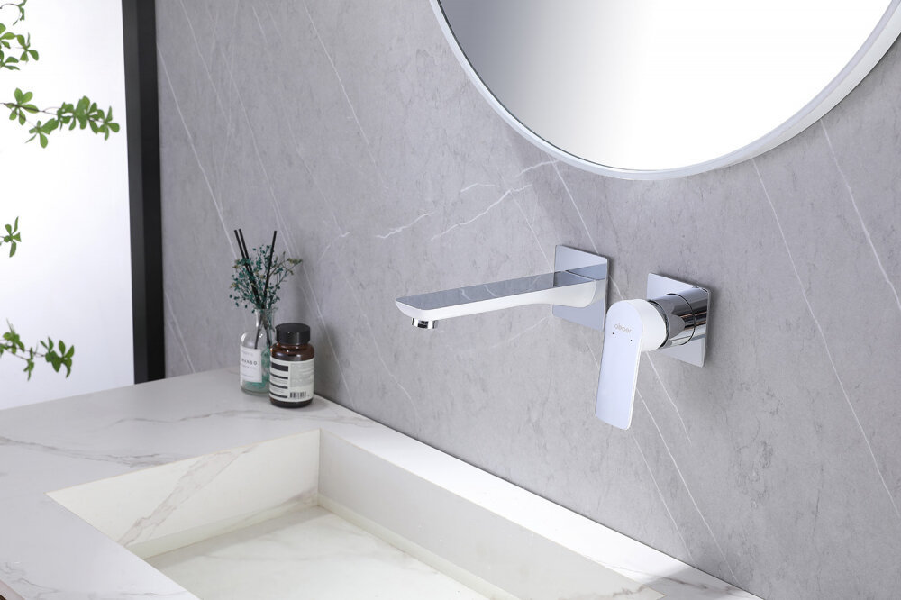 Смеситель Abber Weiss Insel AF8082W для раковины, встраиваемый, белый-хром