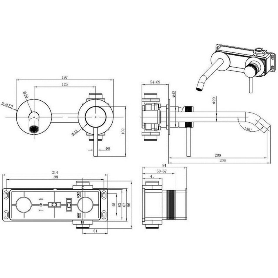 - Размеры модели компактные (197*206) мм, а длина излива составляет 200 мм.