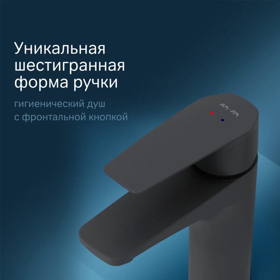 Смеситель Am.Pm Gem для раковины, с гигиеническим душем, черный матовый, F90A03022
