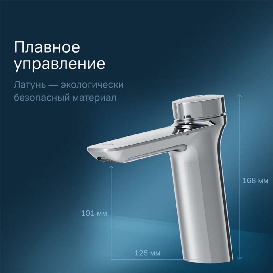 Впервые инновационный смеситель с уникальными технологиями в массовом сегменте. Идеальная геометрия, разработанная по стандарту SA (Smart Angle) – математические выверенное соотношение высоты смесителя, длины излива и наклона корпуса для удобного использования на умывальнике любого размера. Интуитивная понятная система управления TouchReel для включения/выключения смесителя одним нажатием. Максимально простое управление температурой воды для тех, кто не хочет ничего настраивать. Аэратор с ограничением потока 5,7 л в минуту для уменьшения расхода воды.