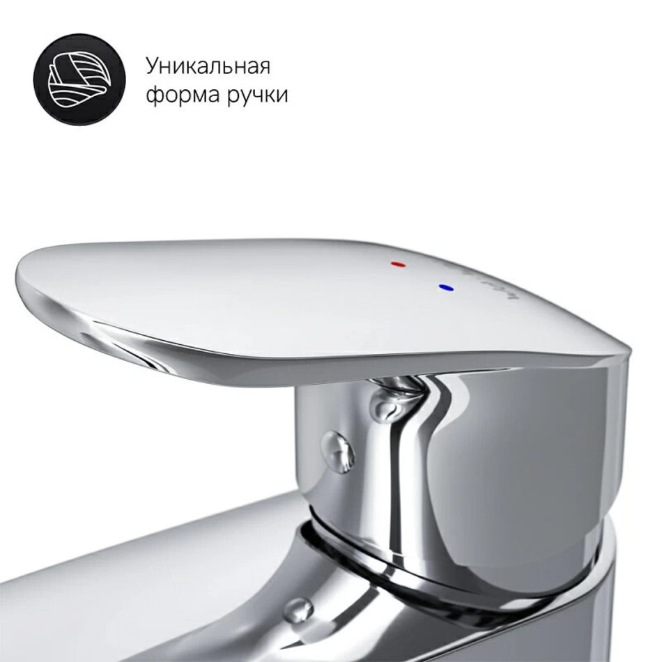 Дизайн, в котором учтены все детали: благодаря уникальной форме ручки капли воды скатываются, предотвращая образование налета, а не высыхают на поверхности.
