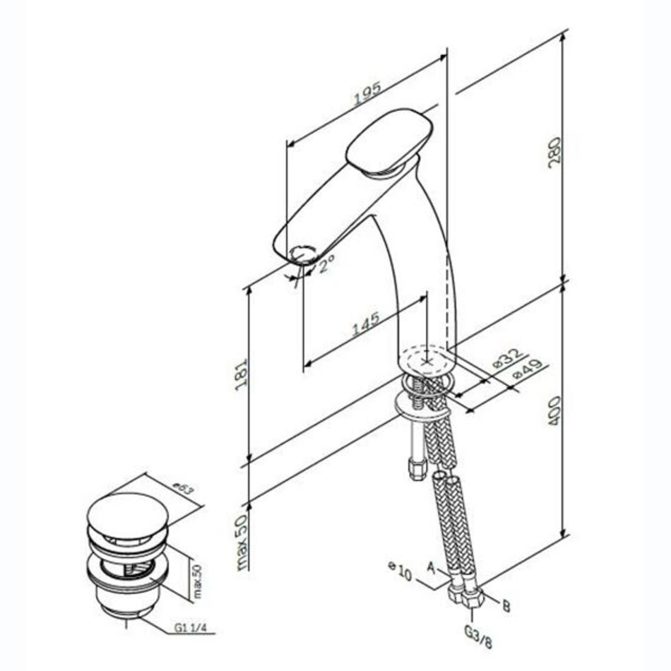 - Подводка: гибкая, G 3/8.