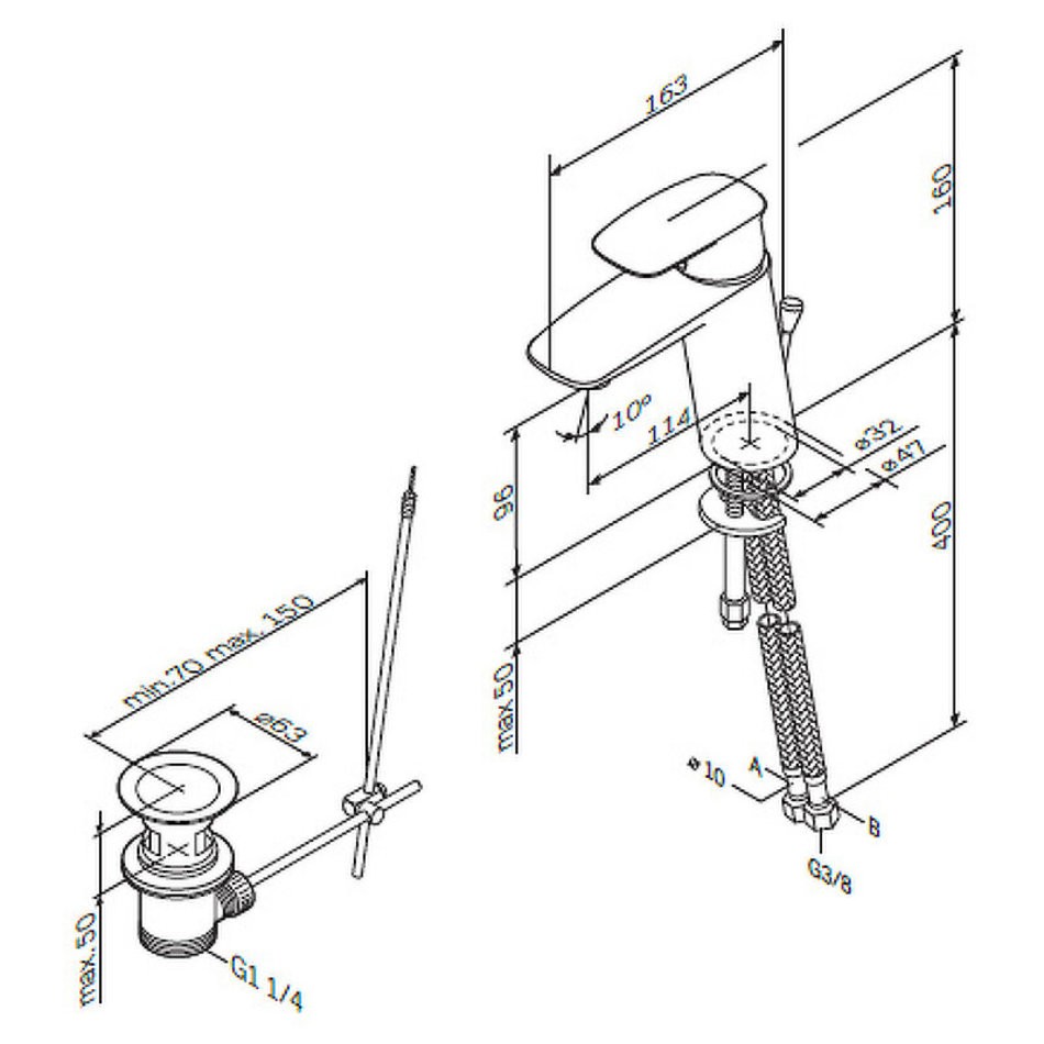 - Управление донным клапаном: рычаг на корпусе смесителя.