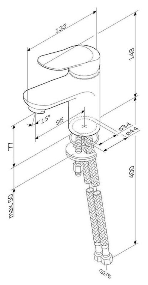Идеальная геометрия, разработанная по стандарту SA (Smart Angle) – математически выверенное соотношение высоты смесителя, длины излива и наклона корпуса для удобного использования на раковине размером от 50 до 120 см.