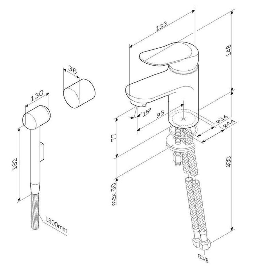 Смеситель Am.Pm Sunny F85C03000 для раковины с гигиеническим душем, хром