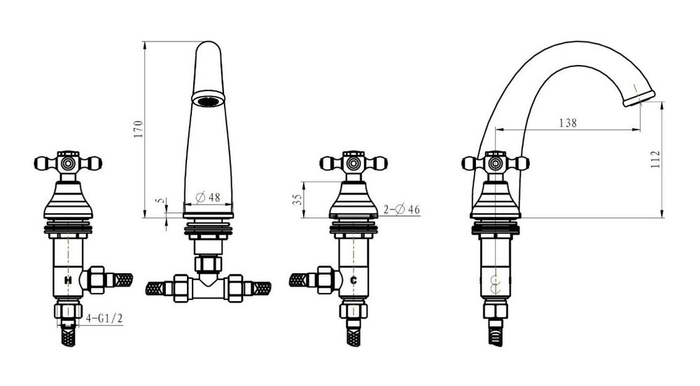 Смеситель Boheme Camelia 277-Camelia (Россия) для раковины на 3 отверстия, хром