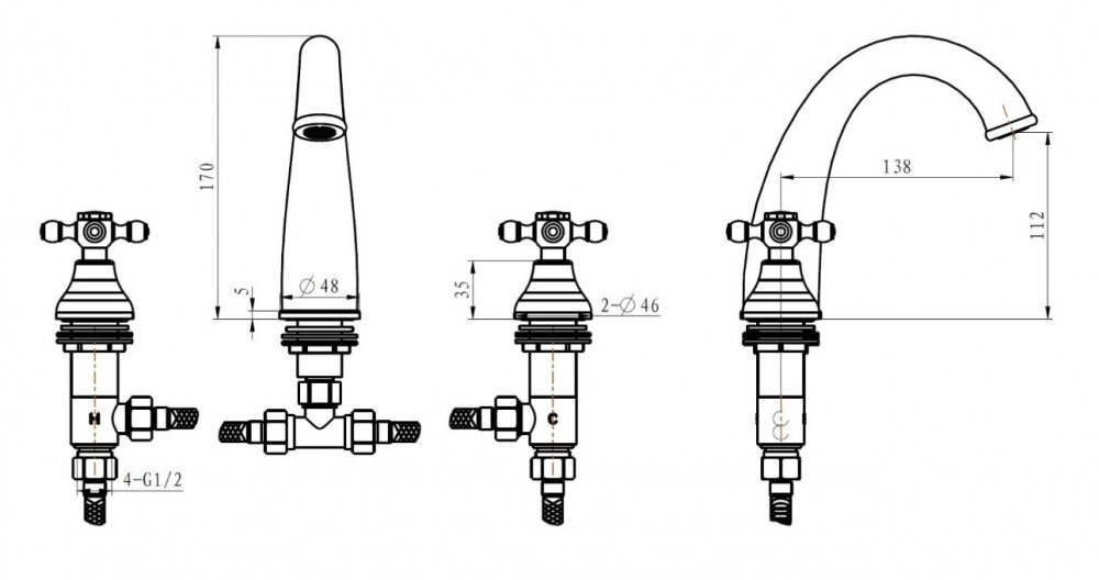 Смеситель Boheme Flora 277-FL для раковины на 3 отверстия, хром