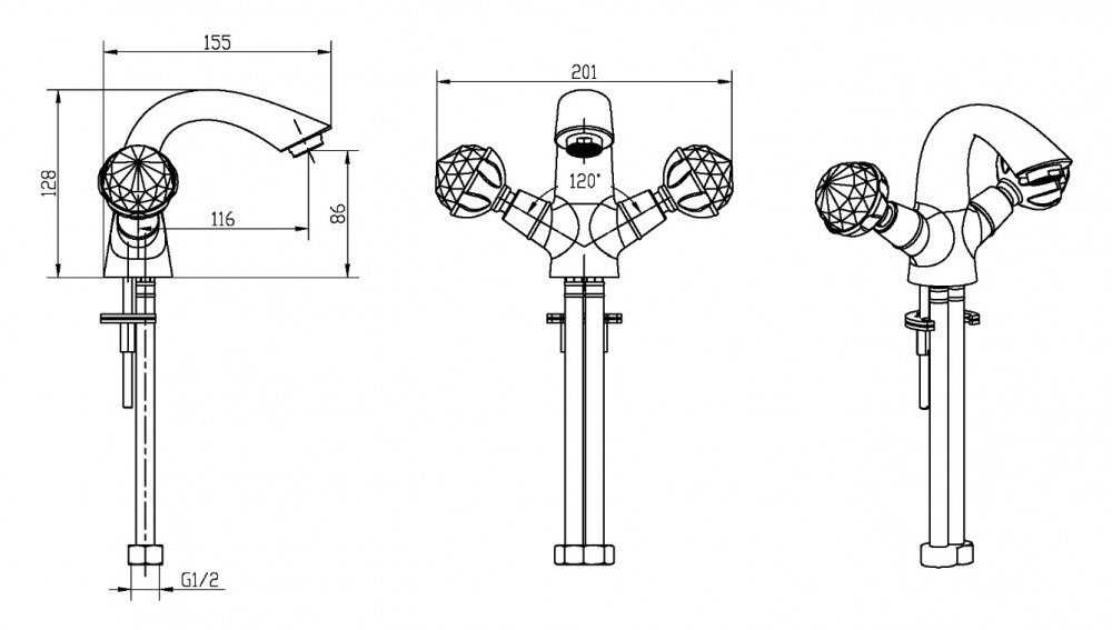 Смеситель Boheme Imperiale 331 Presente для раковины, золото