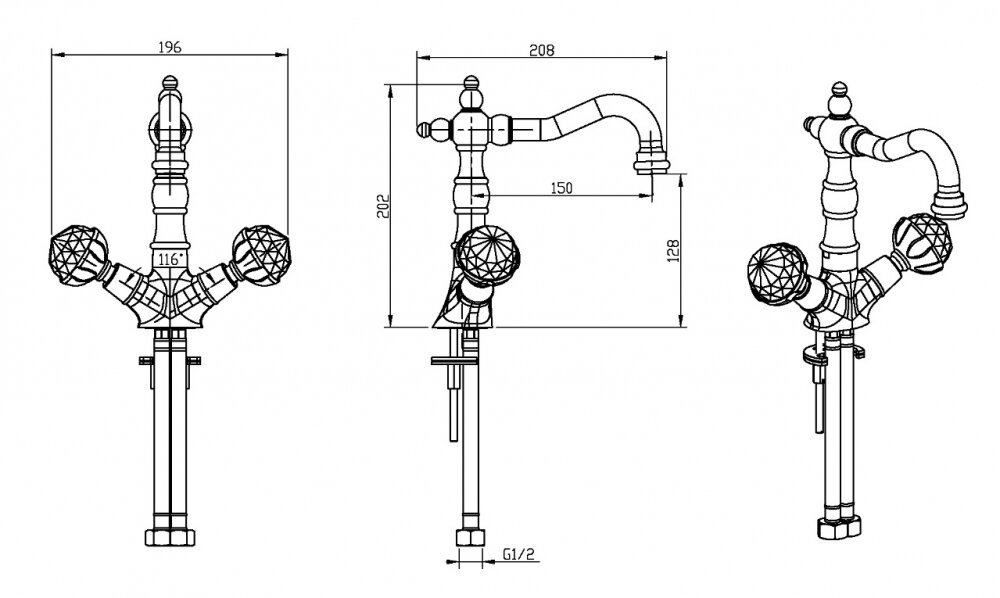Смеситель Boheme Imperiale 332 Presente для раковины, золото