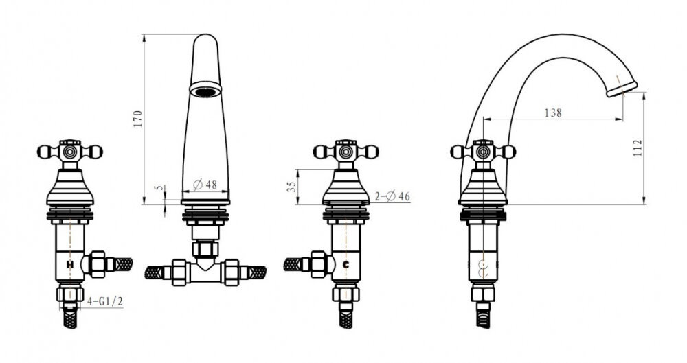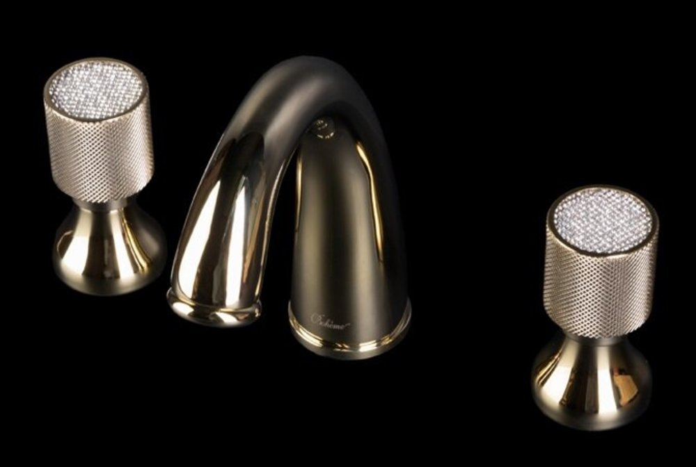 Смеситель Boheme Royal Crystal для раковины на 3 отверстия, золото, 297-Royal/CRST