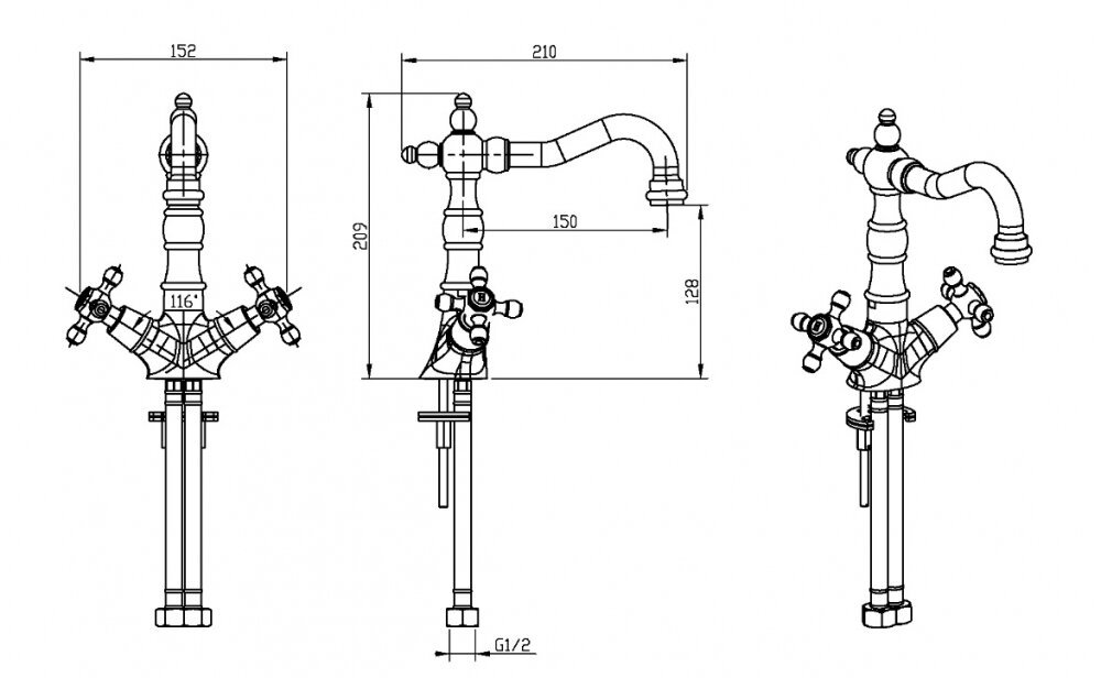 Смеситель Boheme Royal Crystal для раковины, золото, 292-Royal/CRST