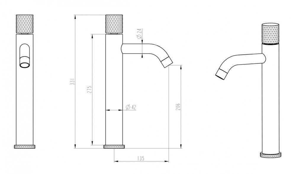 Смеситель Boheme Stick 122-BCR.2 для раковины высокий, черный, (black touch chrome)