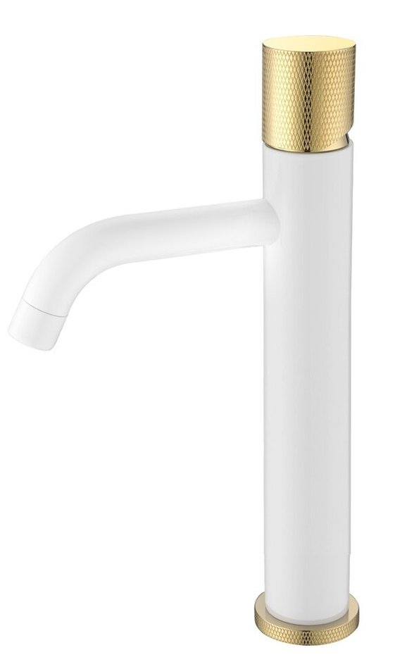 Смеситель Boheme Stick 122-WG.2 для раковины высокий, белый, золото (white touch gold)